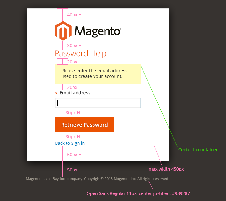 For any questions or additional information about the sign-in module please contact the Magento User Experience and Product Design team.
