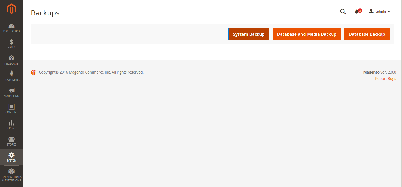 Deprecation Notice! Magento backup features are deprecated as of v2.3.0. We recommend that all merchants investigate additional backup technologies and binary backup tools (such as Percona XtraBackup).